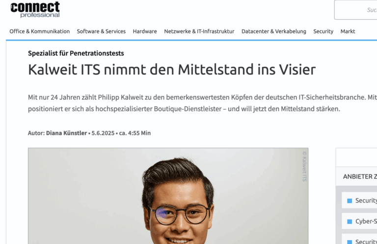 S. Philipp Kalweit ist Director Strategy & Consulting mit Fokus auf Security Awareness und offensive IT-Revision. Seit neun Jahren berät er Mittelständler und Konzerne, insbesondere in hochregulierten Branchen. 2019 wurde er von DIE ZEIT als „Hamburger des Monats“ geehrt und in die Forbes 30 under 30 DACH-Liste aufgenommen.