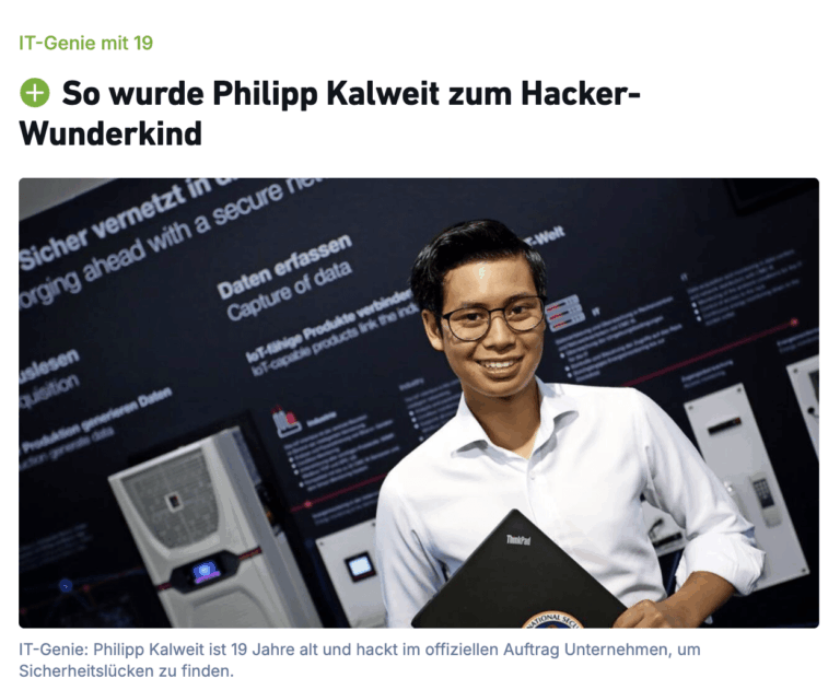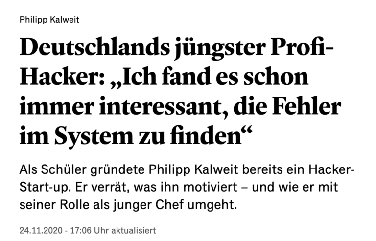 Handelsblatt "Deutschlands jüngster Profi-Hacker: 'Ich fand es schon immer interessant, die Fehler im System zu finden' “